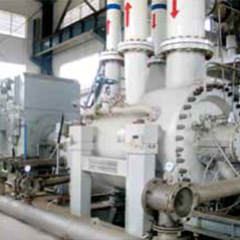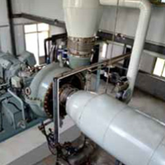EGV系列水蒸氣離心壓縮機(jī)適用于MVR蒸發(fā)系統(tǒng)中,廣泛應(yīng)用于化學(xué)工業(yè)(蒸發(fā)、結(jié)晶、提純、濃縮)、廢水處理(含鹽廢水、含重金屬?gòu)U水等)、制藥(維生素等)、食品、添加劑工業(yè)(味精、大豆、蛋白質(zhì)乳液的蒸發(fā))、飲料工業(yè)(牛奶,果汁,乳清,糖溶液的蒸發(fā))等。 屬于單級(jí)、高速、單懸臂結(jié)構(gòu),壓縮機(jī)軸端密封采用碳環(huán)密封。該壓縮機(jī)葉輪和蝸殼安裝在高速齒輪箱上,與齒輪箱成為整體,由電機(jī)驅(qū)動(dòng)。機(jī)型涵蓋以下共計(jì)16個(gè)機(jī)型:28/31/35/40/45/50/56/63/71/80/90/100/112/125/140/160。采用系列化設(shè)計(jì)及高效的三元流開(kāi)式葉輪,機(jī)殼采用鑄不銹鋼整體鑄造。 壓縮機(jī)為整體撬裝結(jié)構(gòu),單層布置,軸向進(jìn)氣,結(jié)構(gòu)緊湊,占地面積小,安裝周期短,易于維修,占用資源較少,便于安裝找正、維護(hù)。 油站兼具底座功能,潤(rùn)滑系統(tǒng)整體撬裝于底座上,節(jié)約管路、專用底座等成本;采用方便拆卸、維護(hù)的葉輪連接方式;帶有盤車結(jié)構(gòu),方便保養(yǎng)。該壓縮機(jī)可采用進(jìn)口導(dǎo)葉調(diào)節(jié)方式,滿足較寬的流量變化工況,調(diào)節(jié)范圍寬,達(dá)75%~105%。 該系列壓縮機(jī)采用成熟可靠的模型級(jí)和先進(jìn)的氣動(dòng)計(jì)算程序,壓縮機(jī)效率可達(dá)87%,經(jīng)機(jī)組現(xiàn)場(chǎng)運(yùn)行驗(yàn)證和評(píng)估,達(dá)到了國(guó)際先進(jìn)水平。